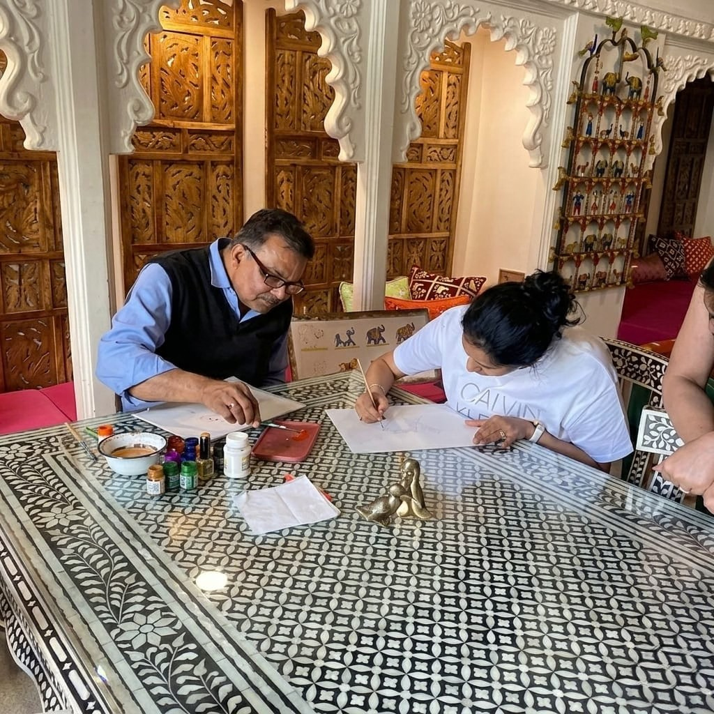 Rang Havelii offers guests the opportunity to immerse themselves in this meticulous craft within the setting of a restored heritage home.