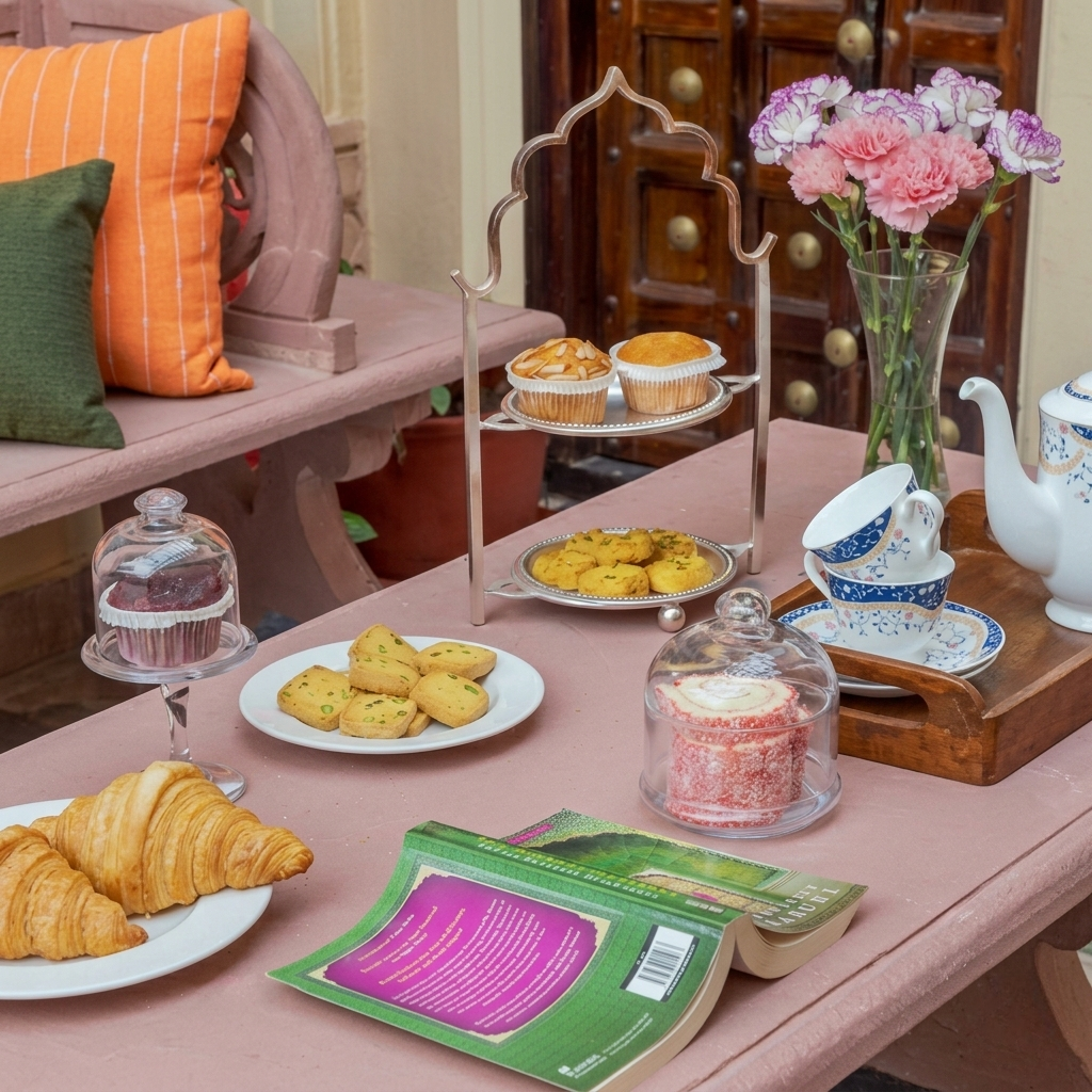 Whether you’re tucked away with a classic novel or sharing whispers with a loved one, our curated tea service celebrates the art of slow living. Our tiered platters blend the best of both worlds—from buttery French croissants and delicate Swiss rolls to traditional Rajasthani snacks.