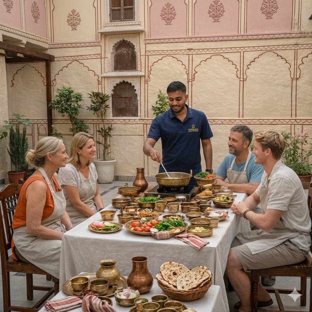 Step away from the tourist trails and into the heart of our villa’s kitchen. Our heritage cooking classes offer more than just recipes; they are a sensory journey through generations of Rajasthani culinary traditions.