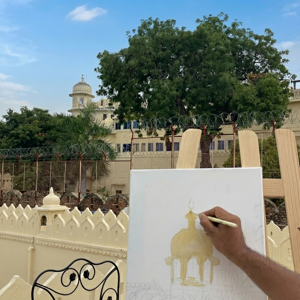 We provide everything you need to turn your inspiration into a keepsake. Whether you’re an experienced artist or haven’t touched a sketchbook since childhood, our Artist Kits are available for all guests. Set up your easel on the terrace, in the quiet shade of the courtyard, or even by the pool. No pressure, no deadlines—just you, the colors, and the spirit of Udaipur.