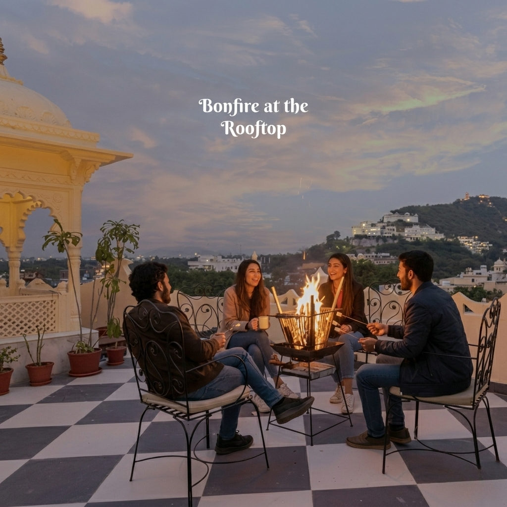 Warmth and Wonder: Rooftop Bonfire at Rang Havelii Udaipur