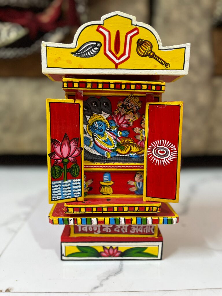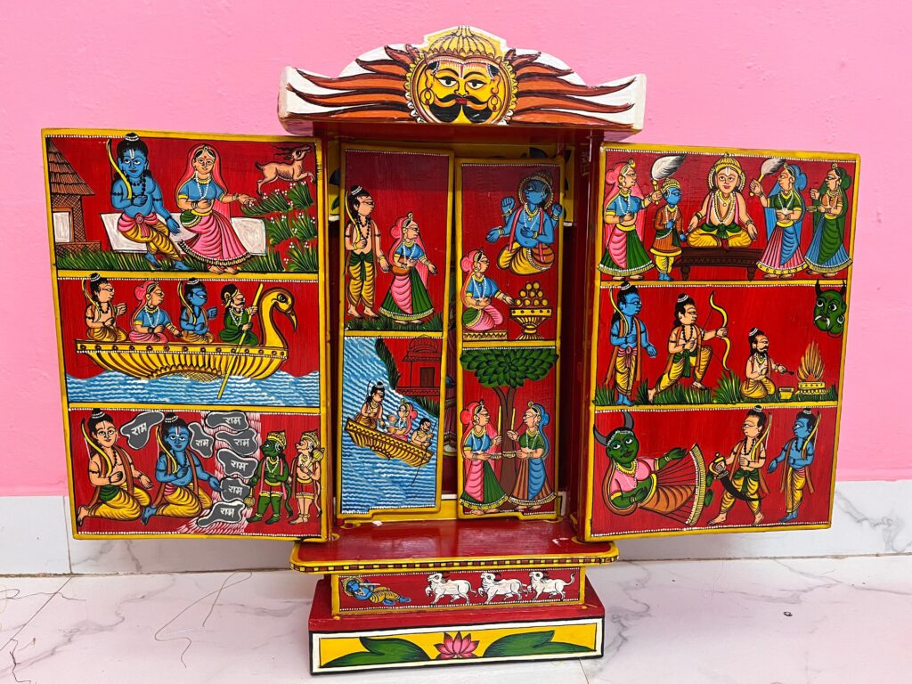 Kawad Art represents a journey from the outer world to the inner sacred space. As each panel opens, a new part of the story is revealed, leading inward toward the central sanctum where the principal deity is placed.