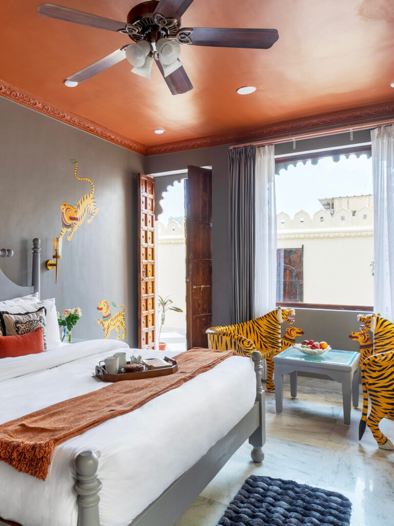 At Rang Havelii, guests step into a restored Rajasthani heritage home where every detail—from marble-carved jharokhas to hand-painted frescoes—reflects centuries of culture. It’s a boutique stay designed to feel intimate, royal, and deeply rooted in tradition.