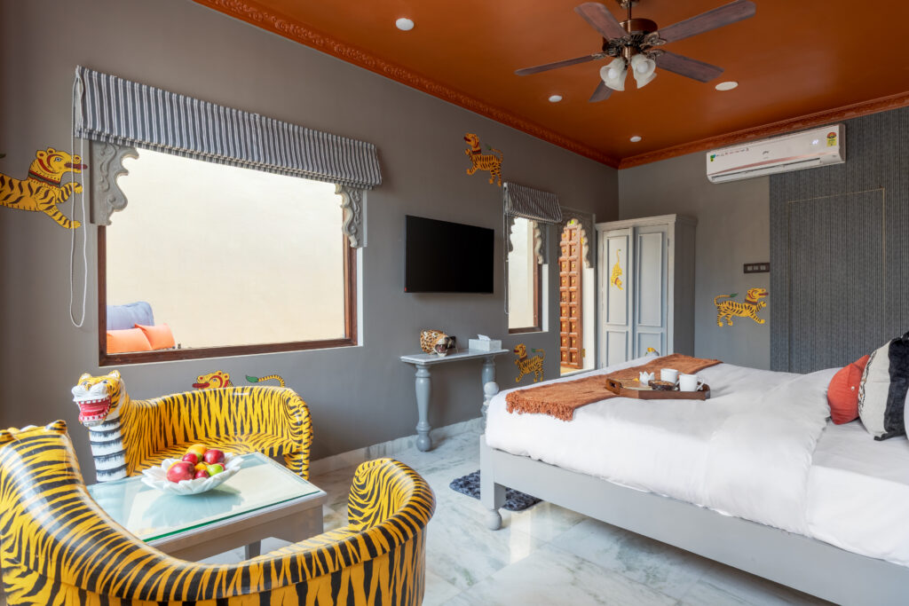 Each room at Rang Havelii is crafted to offer the best of both worlds. The architecture and decor remain traditionally regal, while amenities like air-conditioning, premium bedding, and modern bathrooms ensure complete comfort.
